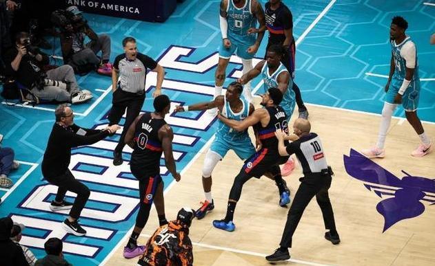 第三节比赛出现意外波澜,布里奇斯空切得分、米勒外线命中帮助黄蜂再度实现反超,杜伦在内线展现统治力,连续篮下得分独得7分,邓罗抛投稳稳命中,活塞打出9:0的攻势重新掌握赛场主动。比赛中段杜伦和迪亚巴特在篮下卡位时爆发肢体冲突,现场多名球员迅速卷入其中,场面一度失控,裁判回看录像后做出严厉判罚,迪亚巴特、布里奇斯、杜伦、斯图尔特四人全部被驱逐出场。黄蜂折损两名首发核心球员,攻防体系受到重创,活塞抓住人员优势扩大领先,里德罚球命中、邓罗外线出手、坎宁安突破得分接连取分,三节战罢活塞以88:78保持两位数的领先优势。