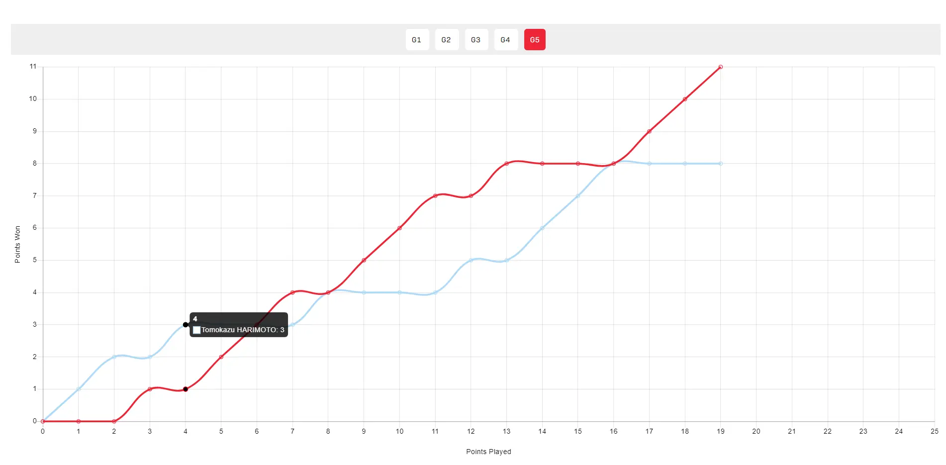 这场比赛张本智和在决胜局开场3-1领先,随后被弗朗西斯卡追到3-3,老弗4-3反超,张本智和追到4-4,随后弗朗西斯卡连拿3分7-4反超,张本智和开始追分5-8,随后到8-8,老弗没有再给张本机会连拿3分11-8拿下胜利。